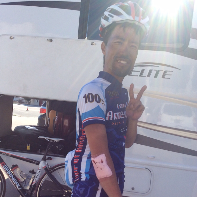 すりむいた部分を処置してくれてそのまま走行再開。